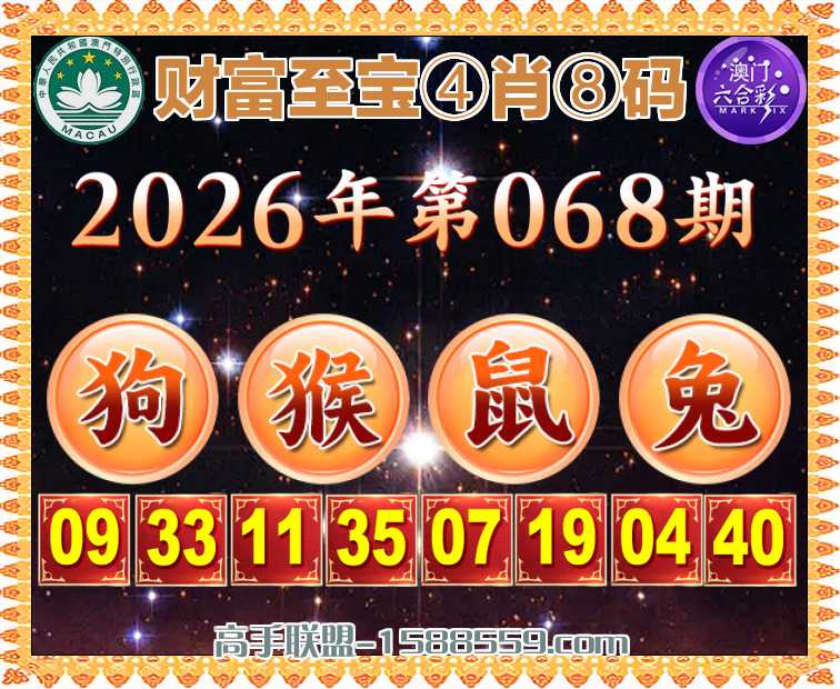 068期:【财富至宝】 👛④肖⑧码👛【狗鼠兔】开:猴23