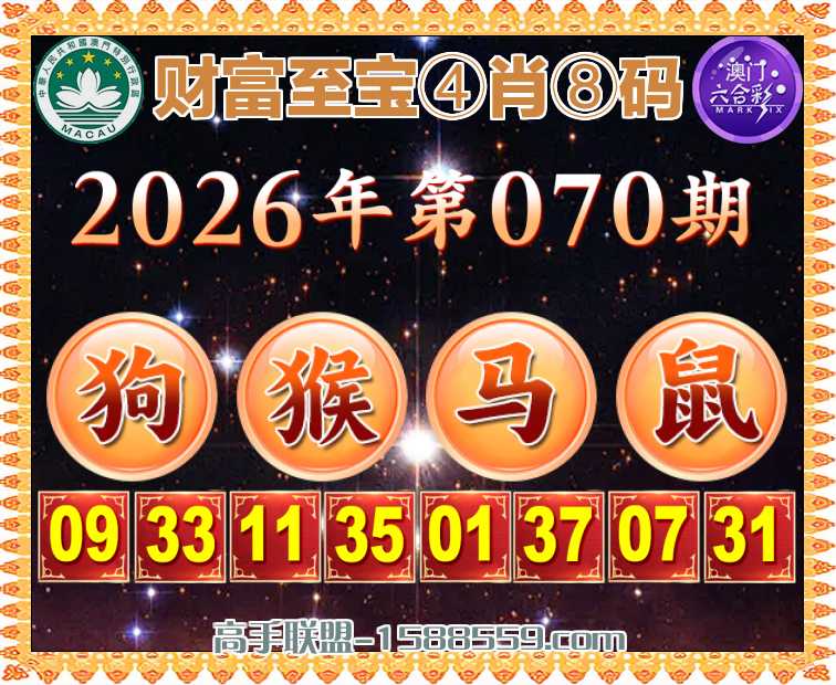 070期:【财富至宝】 👛④肖⑧码👛【狗猴马鼠】开:00准