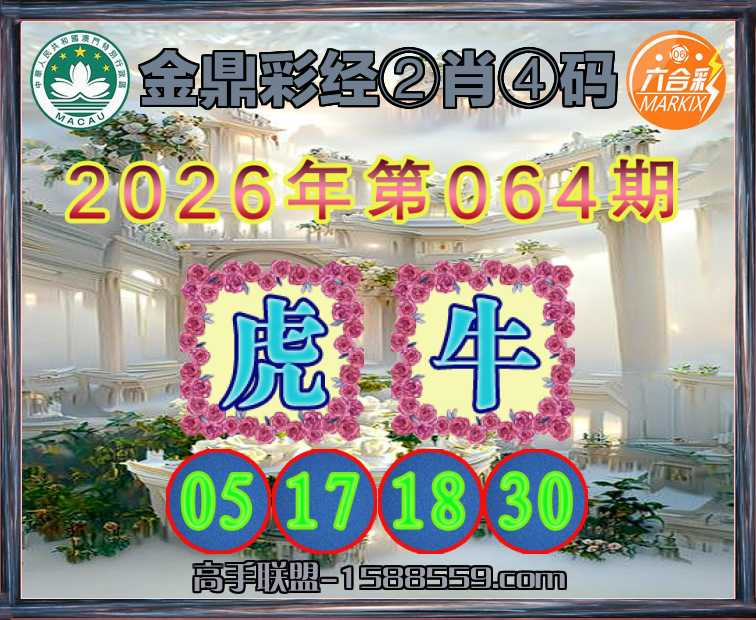 064期:【金鼎彩经】 🐓②肖④码🐓【虎】【05.17.18.30】开:牛18