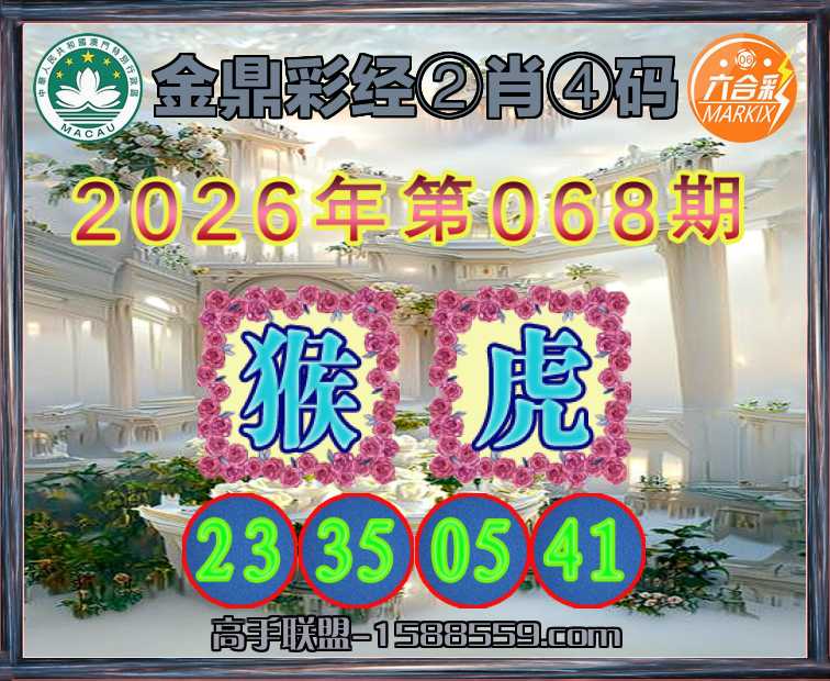 068期:【金鼎彩经】 🐓②肖④码🐓【虎】【23.35.05.41】开:猴23